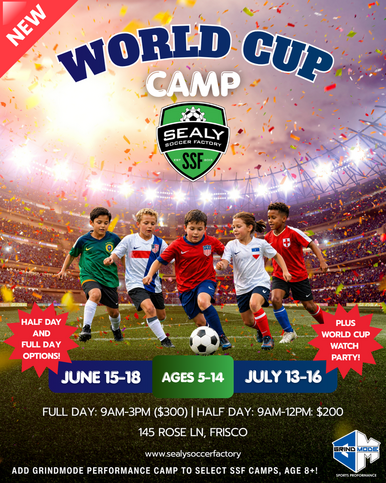 NEW THIS YEAR! Players come representing your favorite National Team and compete in a fun, high-energy, World-Cup style tournament all week long! Each day includes skills training, small-sided games and exciting challenges as teams battle through group play and knock out rounds to reach the World Cup Final. This camp offers full day and half day AND full day options! Lunch will be provided for full-day campers, and players will also enjoy a World Cup watch party on designated game days!
