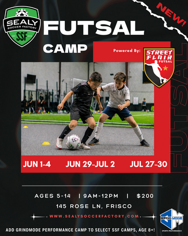 NEW THIS YEAR! Our Street Flair Futsal Academy is launching this summerand we are kicking things off with our new Futsal Camp designed to help players improve foot skills, speed of play, and confidence on the ball. Our brand-new, futsal-specific, fast training surface is designed to challenge players technically - speeding up the game so they must react faster, sharpen their footwork, and execute at a higher level. This summer, we’re bringing a new level of energy, intensity, and purpose to player development! Click here for more details on Street Flair Futsal Academy.